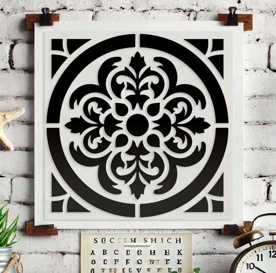 Pochoir Adhésif 20 x 20 cm Carrelage / Carreau Ciment Ronde Stylisée