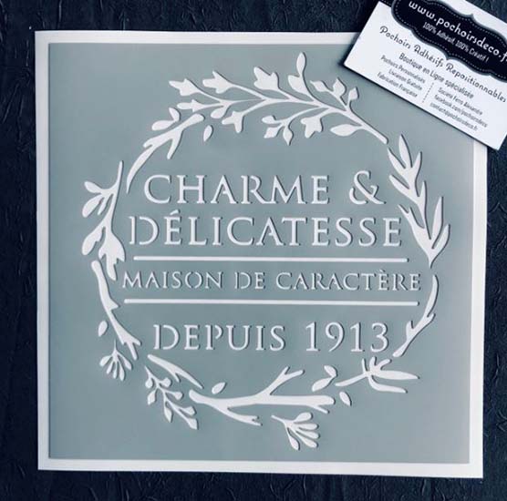 Ce pochoir adhésif de fabrication artisanale française est lavable et repositionnable, Auto adhésif.