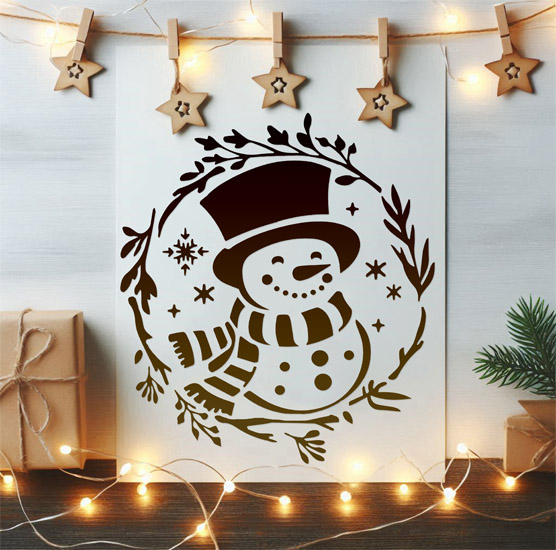 Pochoir Adhésif 20 x 20 cm Couronne de Noël & Bonhomme de Neige