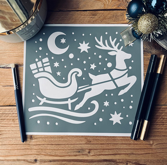 Pochoir Adhésif 20 x 20 cm Couronne de Noël & Hibou Noël