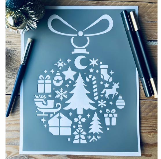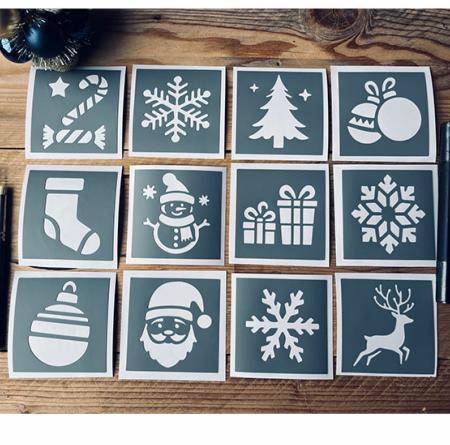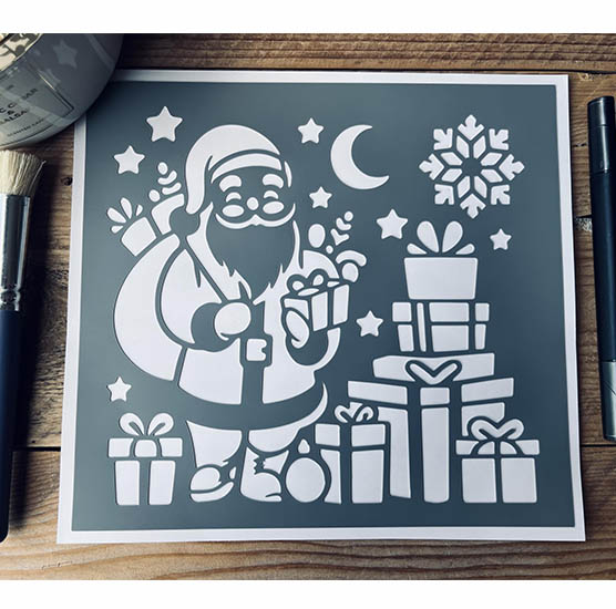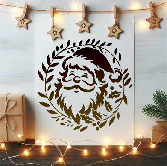 Pochoir Adhésif 20 x 20 cm Couronne Houx de Noël & Portrait Père Noël