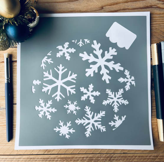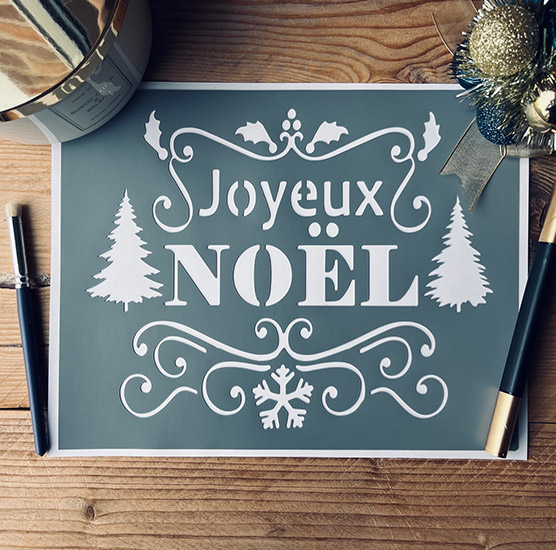 Pochoir Adhésif 20 x 20 cm Couronne Nature Lettrage Joyeux Noel