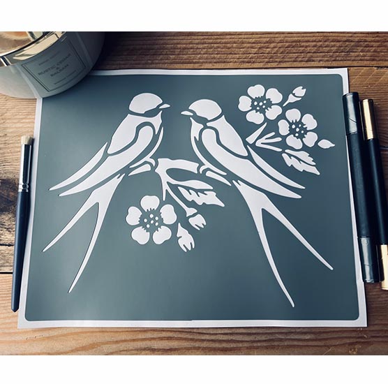 Pochoir Adhésif 25 x 20 cm Oiseaux Hirondelles sur branche