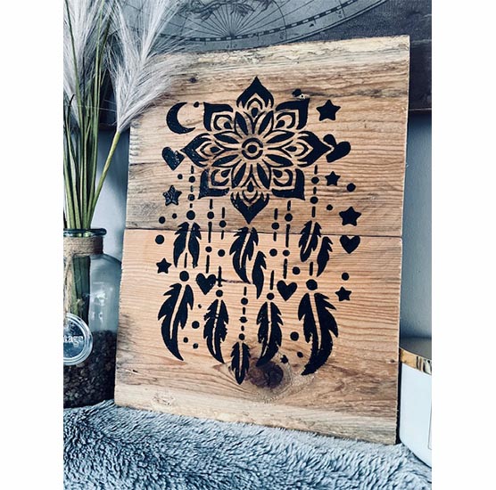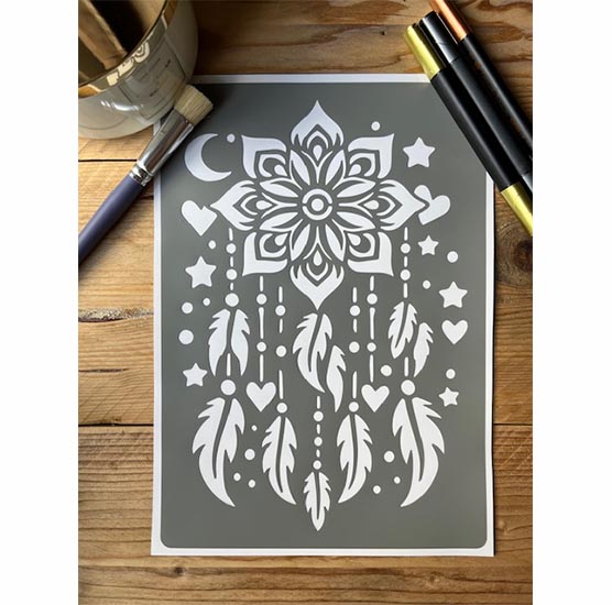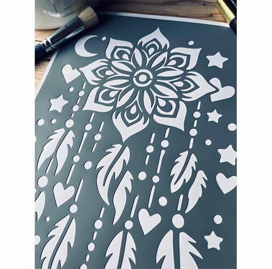 Pochoir Adhésif 30 x 20 cm Grand Attrape Rêve, Plumes & Etoiles
