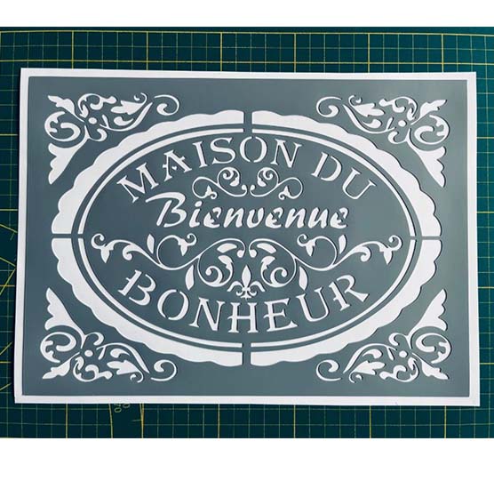 Pochoir Adhésif 30 x 20 cm Médaillon Maison du Bonheur Stylisé